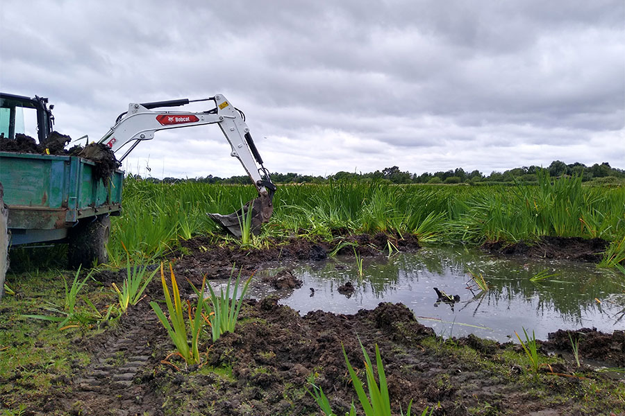 The newly created wetlands make more water available on site to a range of wildlife. They'll soon be being used by wintering snipe, teal and wigeon. Come the summer, we hope dragonflies and other invertebrates will colonise.