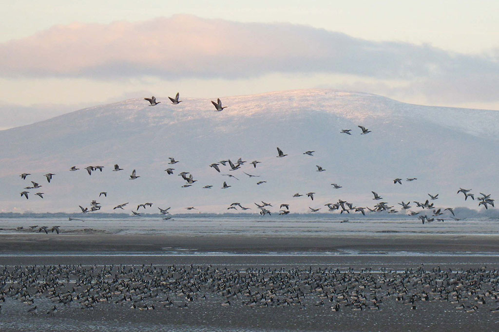On a northern front that stretches from Canada in the west, through to Greenland, Iceland, northernmost Norway and the tundra of Siberia way out to the east, vast numbers of waterbirds are migrating south to flee the cold. They fly in a funnel, drawn down inexorably to the comparatively warm estuaries and wetlands of the UK. For most, this is their destination. For others, this funnel is an hourglass. They feed for a while here at its waist before descending towards Iberia and Africa.