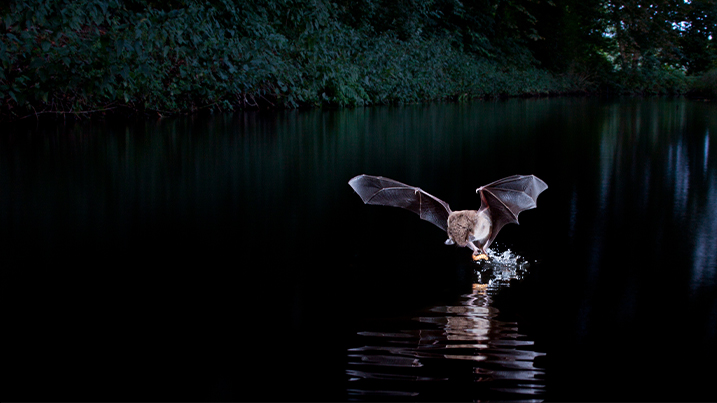The best time to see bats is at dusk on warm, summer evenings. Look around rivers, lakes and ponds where insects swarm. Gardens, woodlands and even city parks can be great spots. If you’re by a wetland, look for Daubenton’s bats skimming the water like tiny fighter jets, while pipistrelles zig zag overhead.