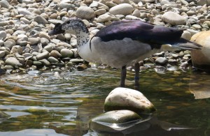 Male comb ducks are very large birds with a big black knob on the bill that the females do not have. Size is everything for males! The fleshy comb or knob is small for much of the year but gets larger at breeding time. Males with the largest comb are more likely to attract a mate!