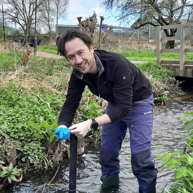 In my role as Principal Research Officer, I oversee the biophysical monitoring and evidence for the Community Bluescapes project in Richmond and Project Sponge in Slough, both part of the DEFRA Flood and Coastal Resilience Innovation Programme (FCRIP). This work investigates the hydrological and ecological consequences of nature-based solutions to flood risk in an urban environment, such as SuDS and river restoration. This involves continuing multi-year data collection across stream catchments to measure changes in water levels, stream invertebrate communities and bat activity, with the aim to capture the impacts of our interventions. A key part of this role also involves facilitating citizen science initiatives to foster engagement and encourage community led long-term monitoring of urban ecosystems.