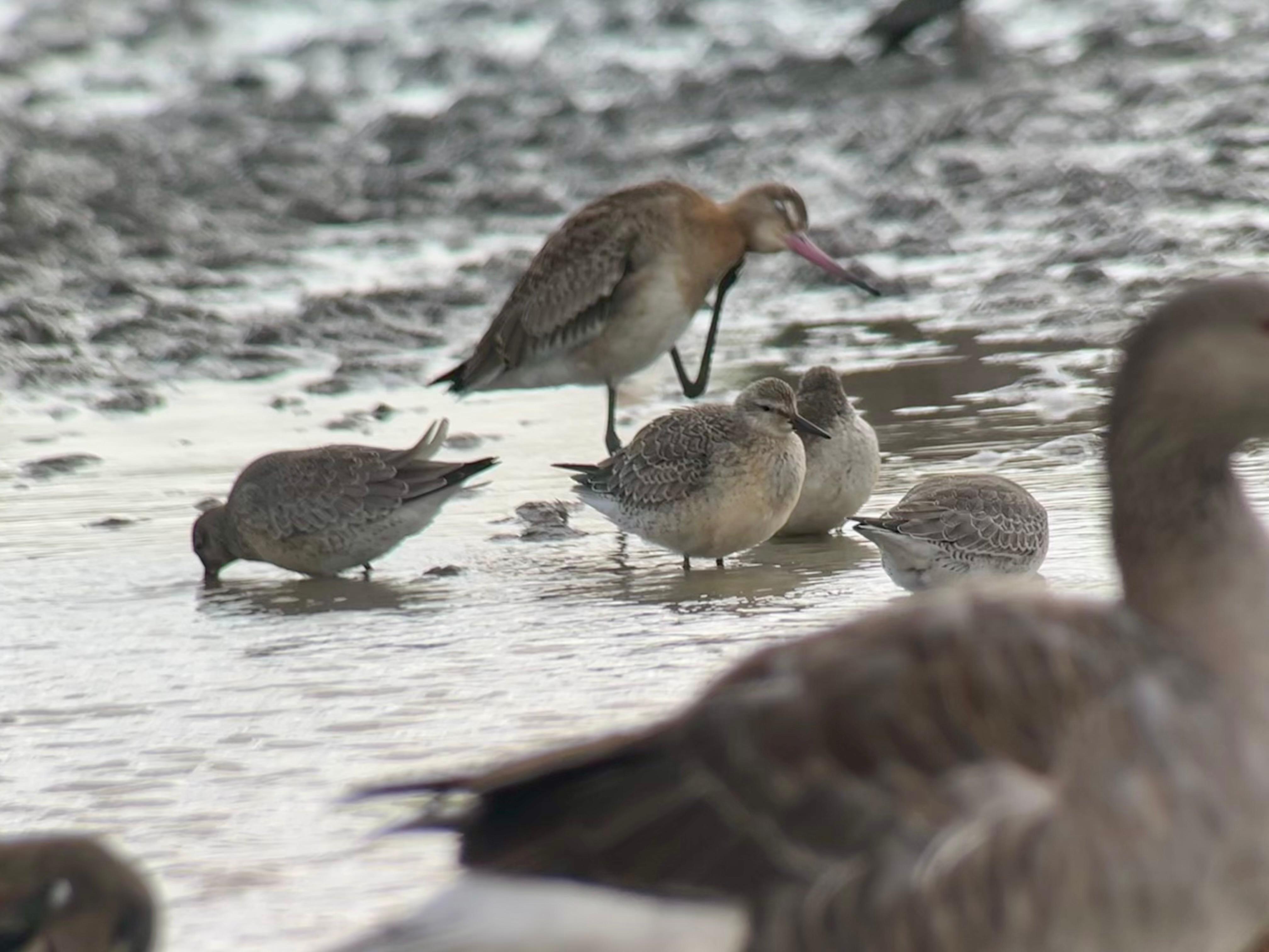 4 Knot, Greenshank, Ruff, 3 Spotted Redshank, Black-tailed Godwit, Redshank, Juvenile Avocet