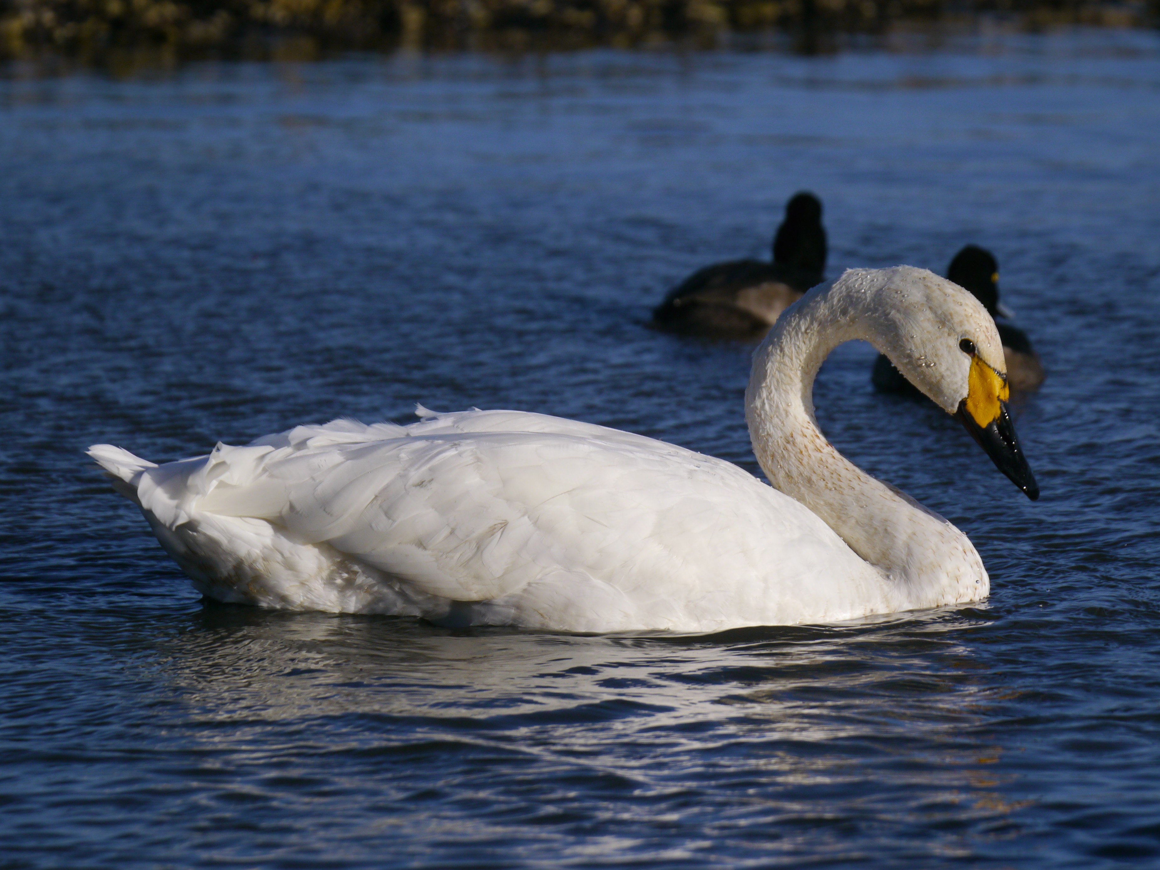 Following on from the arrival of our first three Bewick's Swans of the season yesterday, we had reached a total of thirteen by late morning today. This included a juvenile (cygnet) and some individuals that are well know to us thanks to the bill pattern recognition. Maisie and Maifeld have returned for another winter. Images- M.J. McGill.